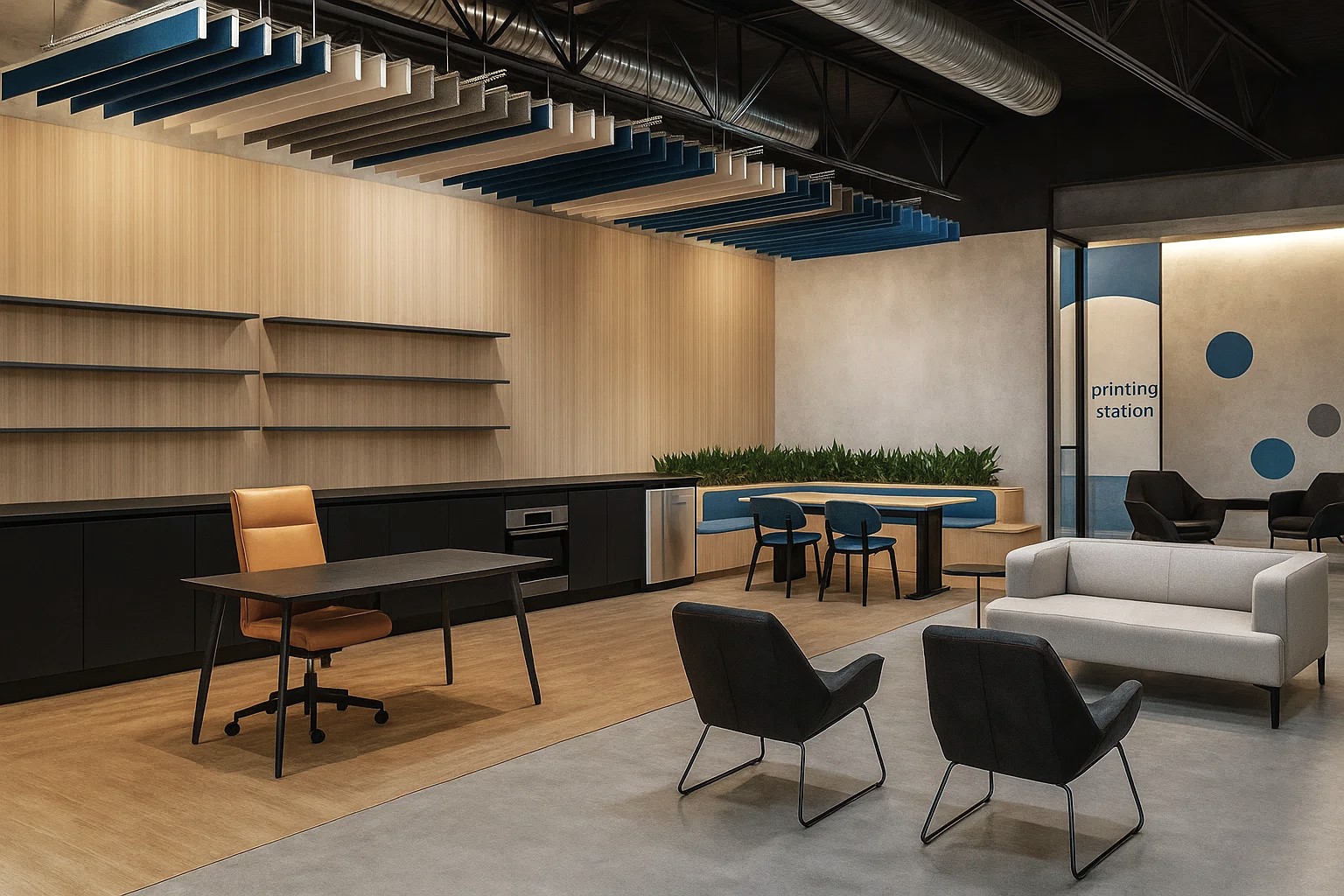 - Office interior design teams who understand sound absorption coefficients achieve Class A acoustic ratings with NRC values above 0.85 through strategic furniture selection and positioning
