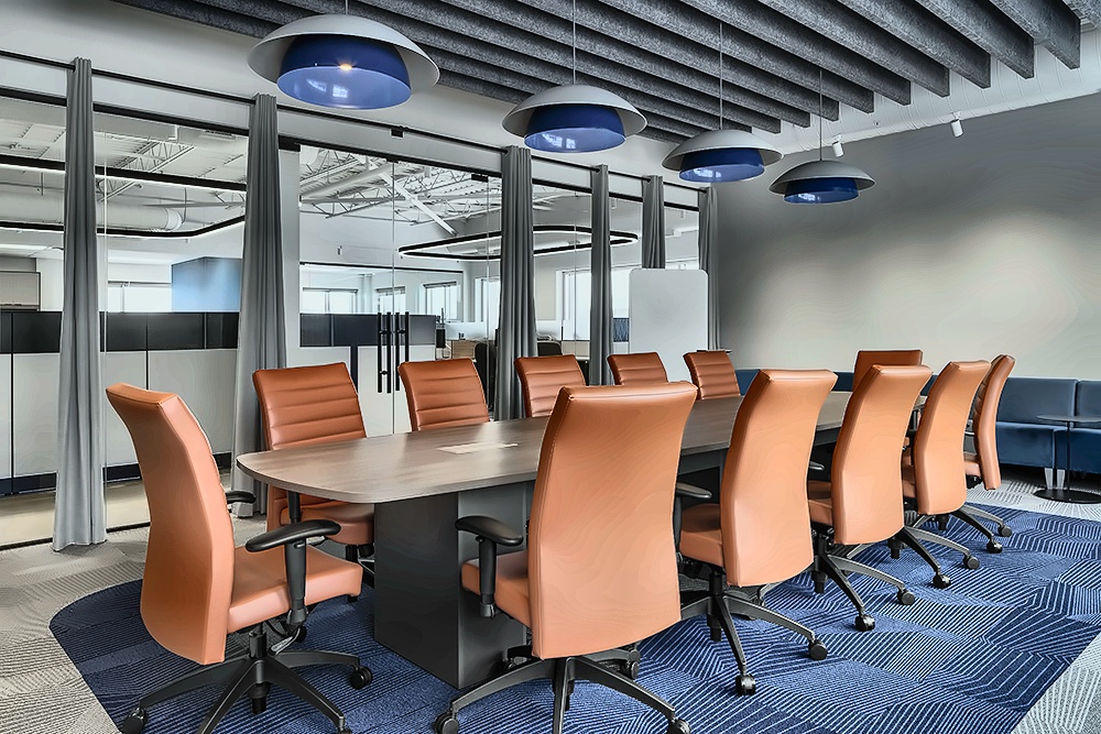 A key component of this redesign was the thoughtful selection of Office Furniture. We introduced ergonomic task seating, height-adjustable workstations, and refined executive furnishings that immediately distinguish the space from its previous iteration. Private offices were designed with simplicity and sophistication in mind. Glass fronts maintain transparency and access to natural light, while carefully curated furnishings reinforce comfort and professionalism.