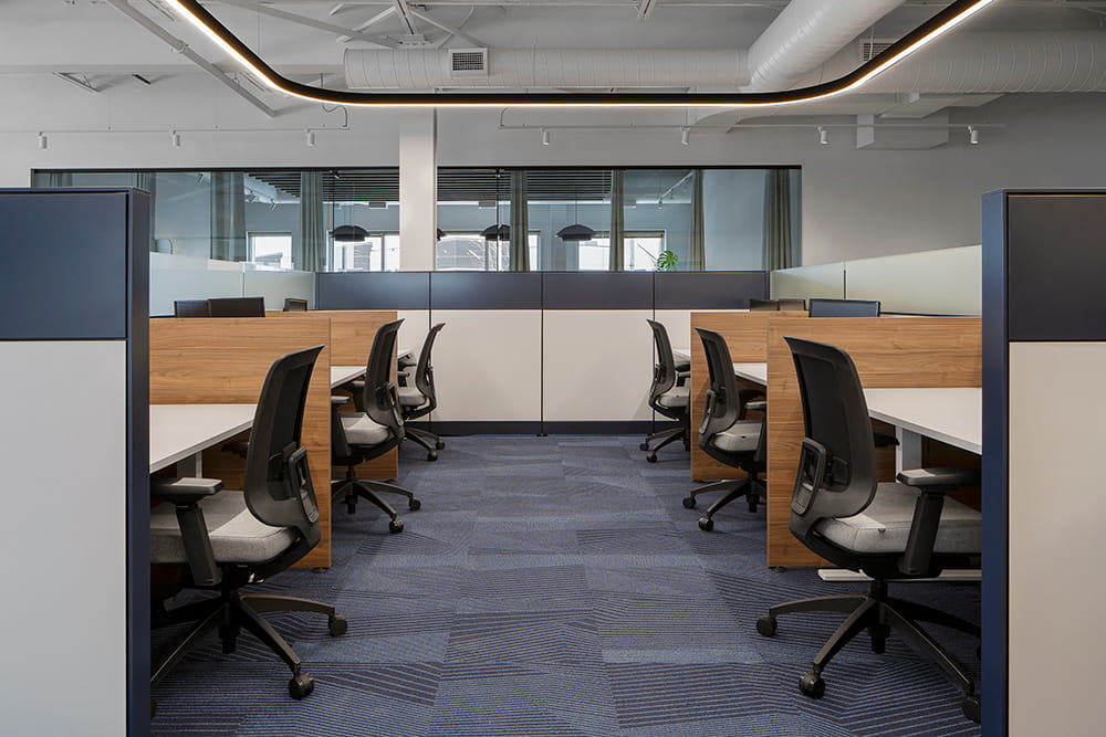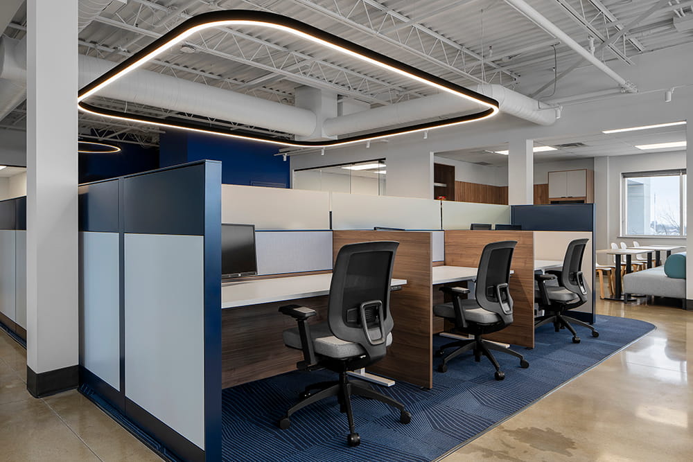 The completed workplace reflects joyful environments that promote productivity and engagement. It is sophisticated, efficient, and distinctly aligned with the forward-thinking identity of the company.