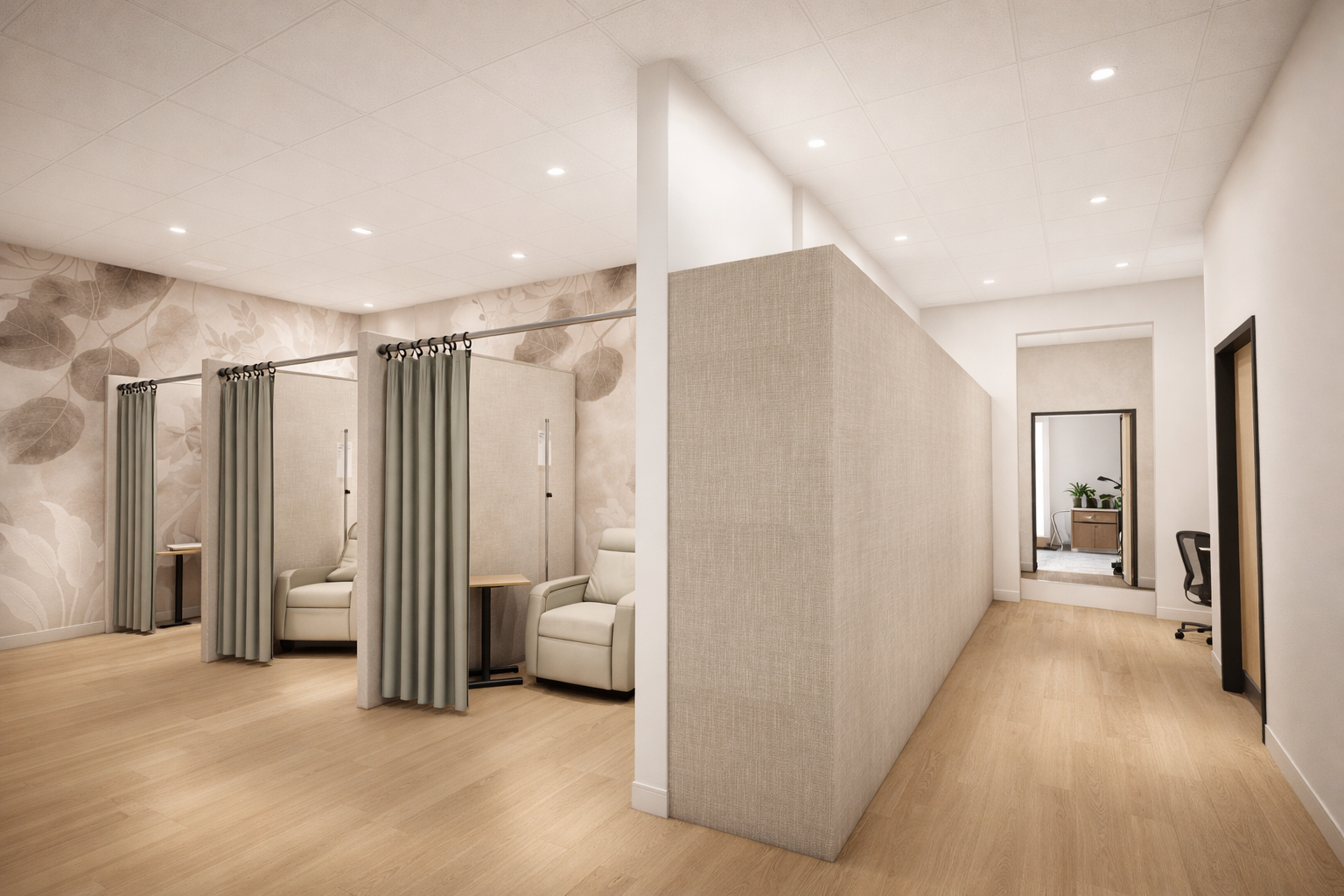 A primary objective was to ensure full compliance with current building codes while creating a clean, intuitive layout that supports clinical functionality. The space was also designed to promote a calming and comfortable experience for both patients and staff, minimizing stress and maximizing efficiency.