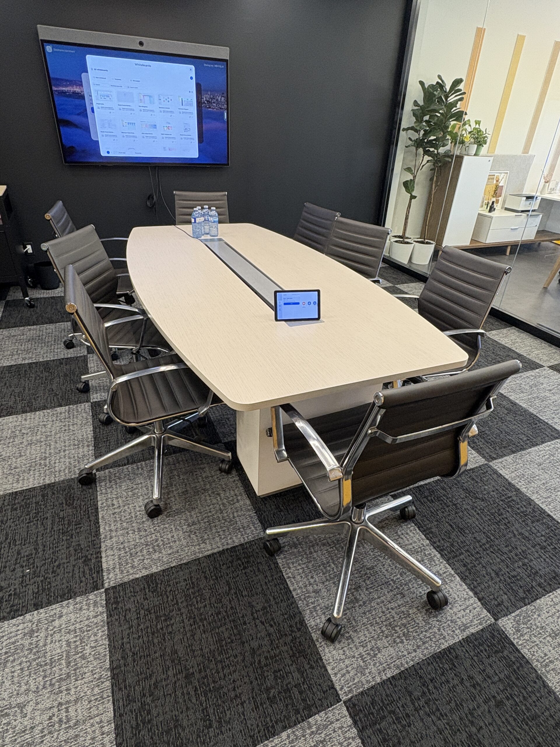 Equipment storage within furniture prevents setup delays while commercial interior designer planning coordinates camera, microphone, and display integration that eliminates the fifteen-minute technology struggles preceding hybrid meetings. Professional systems include preset configurations that activate instantly, enabling smooth transitions between in-person and hybrid collaboration.